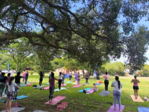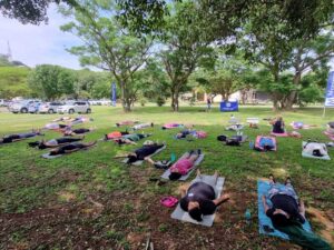 The yoga flows are at a slow pace which allows all participants to keep up and to get familiar with the different poses. Towards the end of the class, Hatha Yoga Bluff focuses on relaxation which normally consists of doing a breathing technique and/or keeping the mind still.